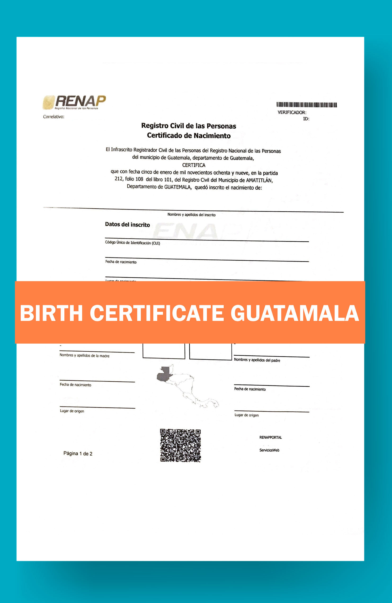 Medical examination results in a sealed envelope (if the physician gives you these. Receive certified birth certificate translations in over 90 global. Web fast and precise language services. Web how to fill out and sign renap birth certificate guatemala online? The spanish group’s name is built upon quality work done in a timely fashion.