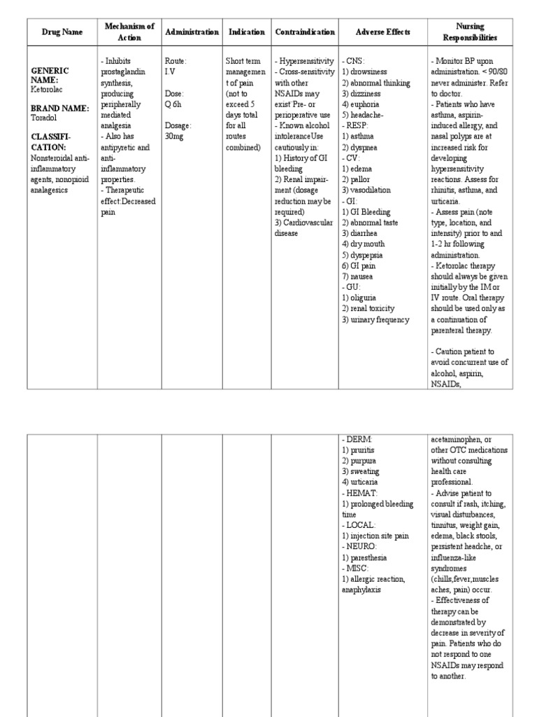 Ketorolac (Toradol) Med sheets ACTIVE LEARNING TEMPLATES