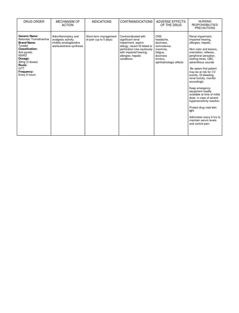 Drug card ketorolac (Toradol) ACTIVE LEARNING TEMPLATES Medication